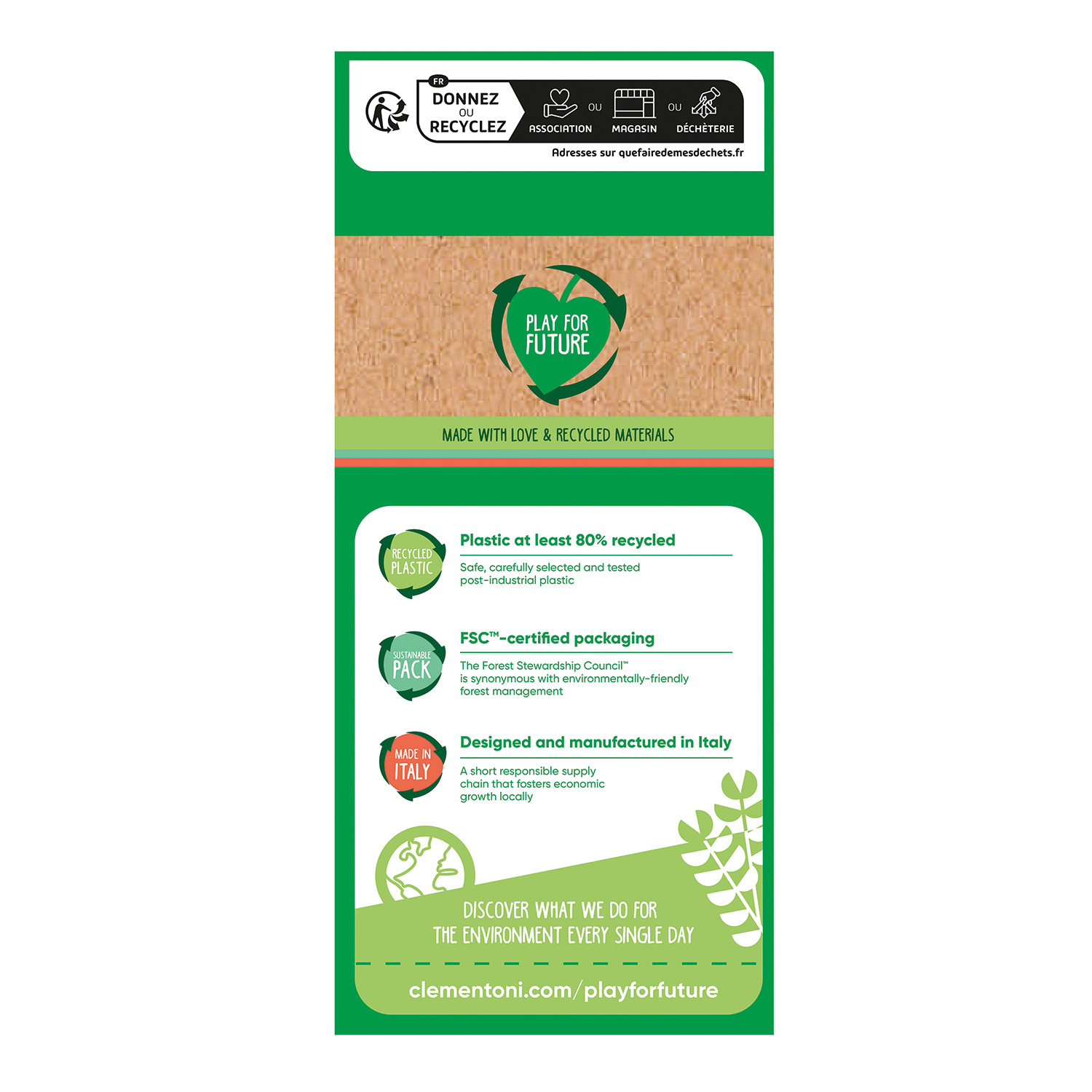 Τέσσερα χαρούμενα ψαράκια που περιμένουν να τα ψαρέψουν και να τα βάλουν στη βάρκα ανάλογα με το χρώμα τους! Ένα κλασικό παιχνίδι σε πιο εξελιγμένη μορφή, φιλικό προς τα παιδιά και διασκεδαστικό. Προωθεί την ανάπτυξη του συντονισμού και βελτιώνει τη λογική σκέψη. Το παιχνίδι διαθέτει εκλεπτυσμένο σχέδιο με απαλά χρώματα και είναι κατασκευασμένο από ανακυκλωμένο πλαστικό, σύμφωνα με την προσέγγιση Play For Future. Ένα καλάμι ψαρέματος με μαγνητική πετονιά που λειτουργεί με εύκολο και διαισθητικό τρόπο. Με 4 ψαράκια να τοποθετούνται στη θήκη του σωστού χρώματος. Το καλάθι για τη συλλογή των ψαριών είναι επίσης μια πλωτή βάρκα για να παίζει το παιδί ενώ κάνει μπάνιο. Τα προϊόντα Play For Future είναι μια απτή ένδειξη της δέσμευση της Clementoni για πιο Υπεύθυνα Προϊόντα. Με μήνυμα σεβασμός στη φύση και σήμα ένα φύλλο σε σχήμα καρδιάς το οποίο είναι ορατό σε όλα τα προϊόντα που κατασκευάζονται από ανακυκλωμένα υλικά. H Clementoni έχει προχωρήσει ήδη στη δημιουργία μίας νέας σειράς παιχνιδιών, φιλικά προς το περιβάλλον. Εκτιμώντας τους πολύτιμους πόρους της γης, προστατεύοντας τη φύση και προτιμώντας υλικά τα οποία ανακυκλώνονται, το παιδί μαθαίνει να αγαπάει τη φύση μέσα από το παιχνίδι! Τα παιχνίδια της σειράς Baby Clementoni βοηθούν τους γονείς να επικοινωνούν και να αλληλεπιδρούν με το μωρό από τις πρώτες ημέρες της ζωής του. Με καινοτόμο σχεδιασμό και χρώματα, μη τοξικά και ανθεκτικά υλικά, καθώς και με ανάγλυφες επιφάνειες και πολλές δραστηριότητες ευνοούν την ανάπτυξη των οπτικών, απτικών και ακουστικών ικανοτήτων, την κινητική δραστηριότητα και τους πρώτους λογικούς συσχετισμούς.