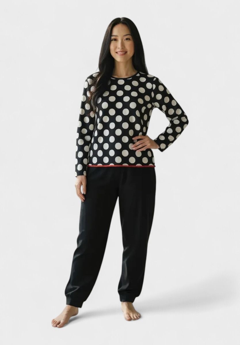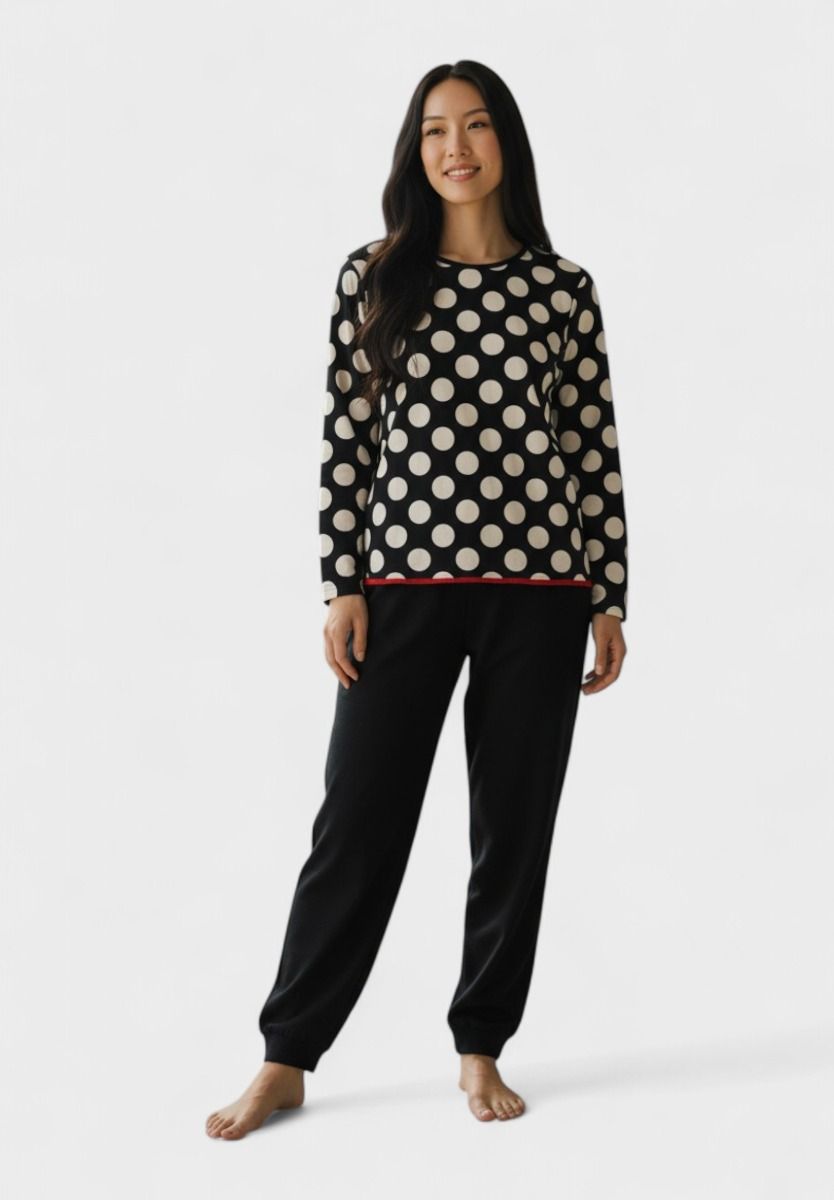 Χειμερινή Γυναικεία Βαμβακερή Πιτζάμα Cherry Underwear Polka Night Μαύρη
