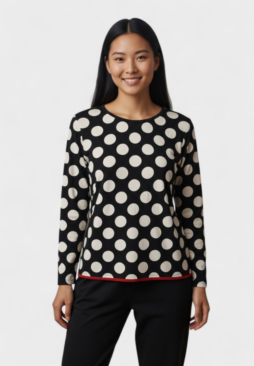Μπλούζα μακρυμάνικη σε μαύρο χρώμα με λευκά polka dots