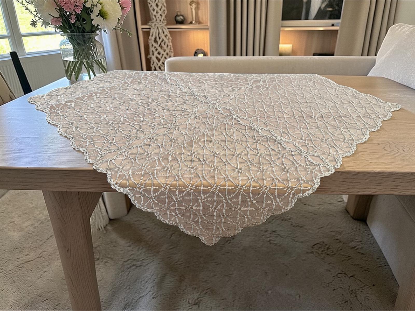 Κομψό και διαχρονικό σετ με φίνο δαντελωτό σχέδιο, ιδανικό για να αναδείξει το τραπέζι ή το σαλόνι σας με διακριτική πολυτέλεια.