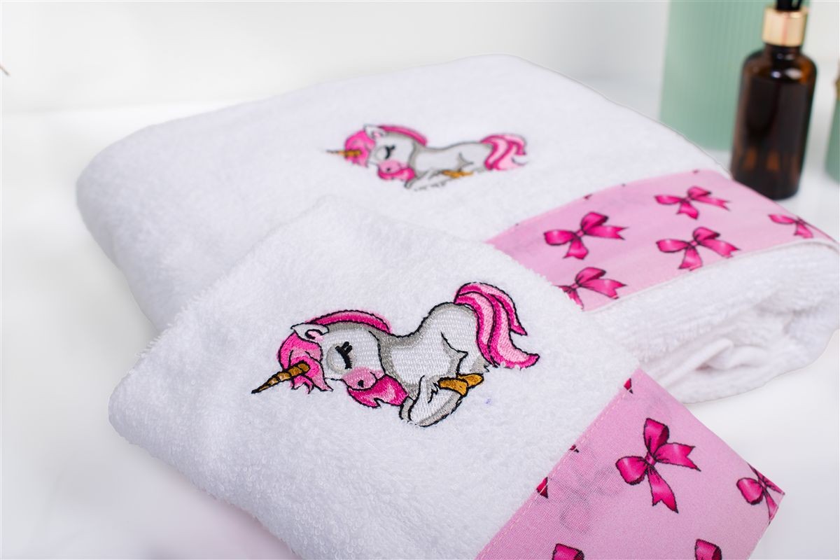 Πετσέτα Με Κέντημα Σετ 2 τεμ bebe Unicorn 188 30X50,70X140 White-Pink 100% Cotton