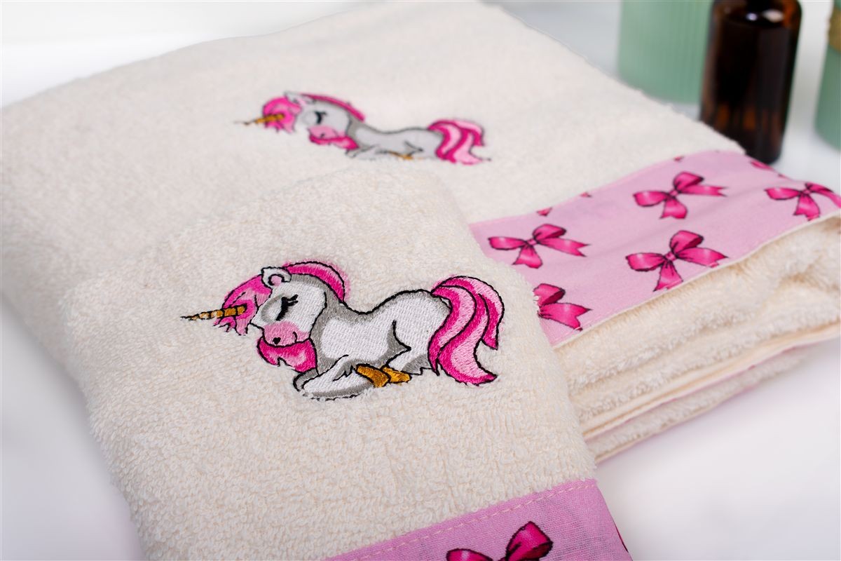 Πετσέτα Με Κέντημα Σετ 2 τεμ bebe Unicorn 189 30X50,70X140 Ecru-Pink 100% Cotton