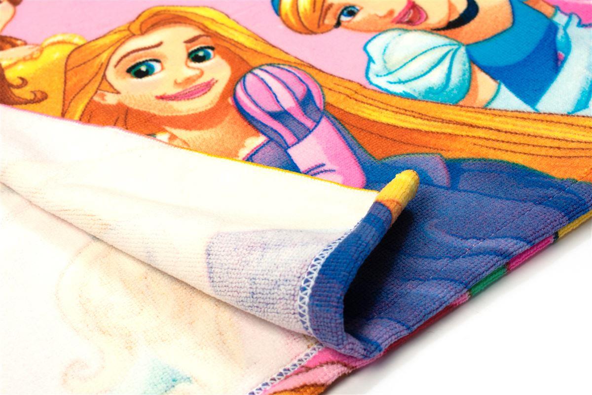 Παιδικό πόντσο θαλάσσης quick dry, διαστάσεων 50X100 cm. Κατασκευασμένο από 100% Microfiber ύφασμα, βάρους 245 gr/m², με νήματα τεχνολογίας Quick Dry τα οποία προσδίδουν υψηλή απορροφητικότητά και έχουν την ικανότητα να στεγνώνουν πολύ γρήγορα. Με σχέδιο ψηφιακής εκτύπωσης που απεικονίζει κάποιες από τις αγαπημένες πριγκίπισσες της Disney, συγκεκριμένα τις: Belle, Rapunzel, Cinderella, Ariel, Tiana, Jasmine, Snow White, Aurora. Το πόντσο είναι ελεγμένο για επιβλαβείς ουσίες με το αναγνωρισμένο παγκοσμίως πιστοποιητικό, OEKO TEX® Standard 100. Συσκευασία Polybag.