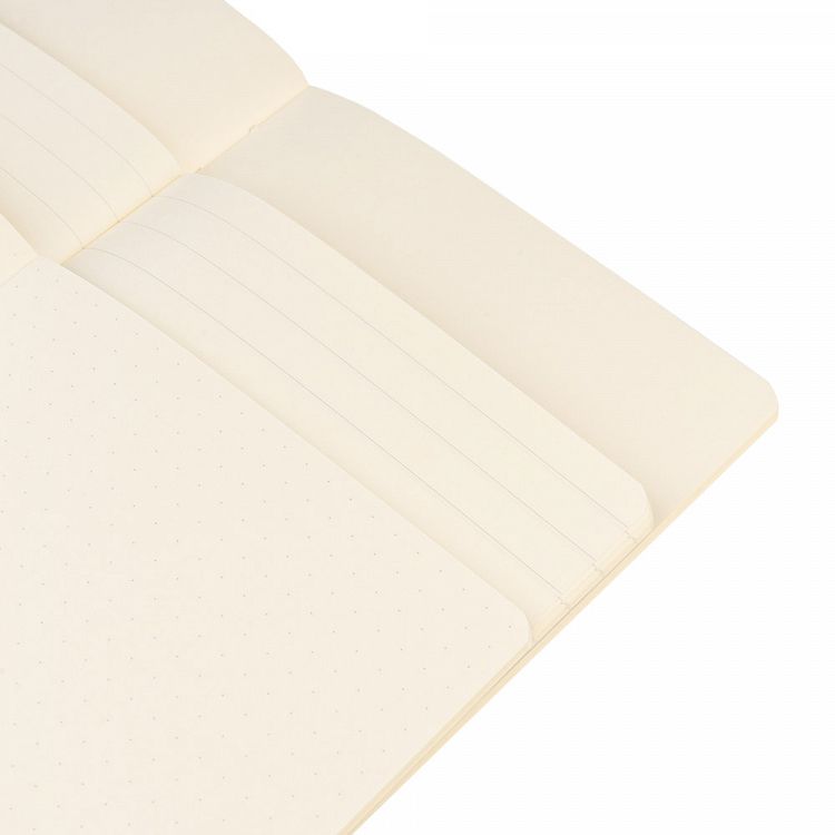 Πολυτελή τετράδια με ραφτή ράχη και μαλακό εξώφυλλο, σε διάσταση Α5 (15 x 21 εκ.). Κάθε τετράδιο περιέχει 64 σελίδες χαρτιού 80 γρ. Το σετ περιλαμβάνει ένα τετράδιο με κενές σελίδες, ένα με ριγέ σελίδες κι ένα με τελίτσες.